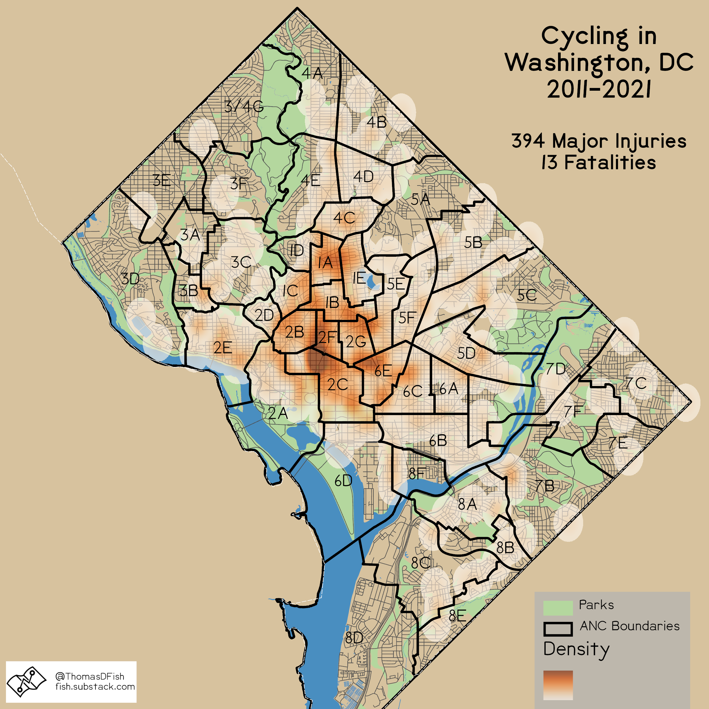 2011 and 2021 according to crash data collected by the DC Department of Transportation.